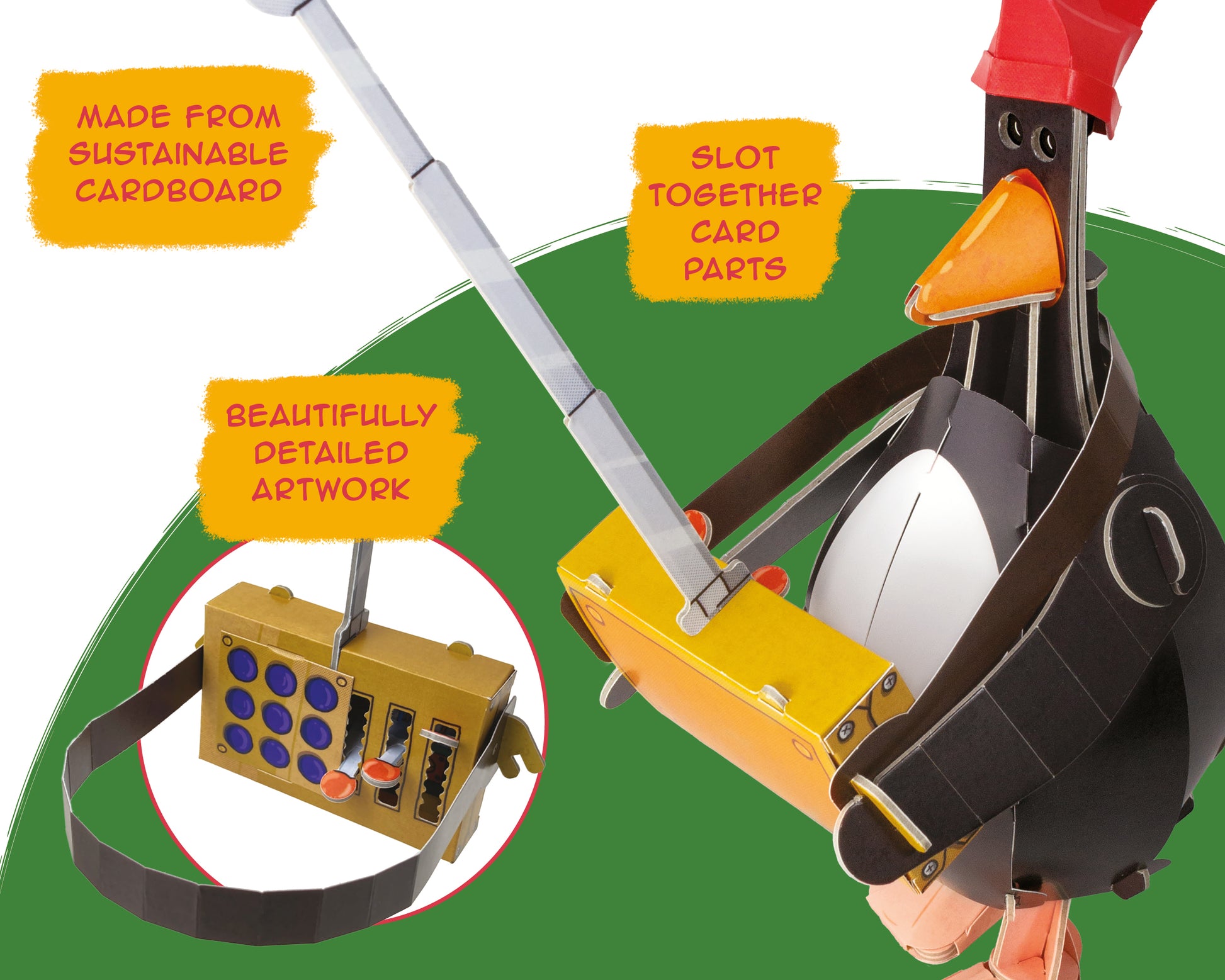 Recreate the criminal mastermind himself — Feathers McGraw — with this eco-friendly, STEM-inspired Build Your Own kit. Straight from the Oscar®-winning Wallace & Gromit: The Wrong Trousers, this cardboard kit brings the iconic villain to life… with a few cracking surprises!