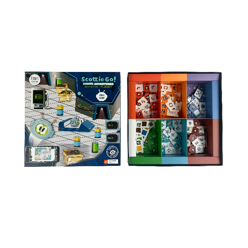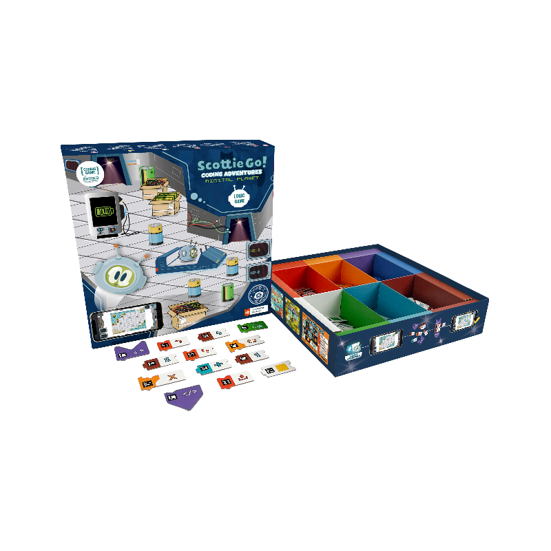 Scottie Go! by BeCREO is an app based, coding, board game that teaches children about programming and coding. Help Scottie, the friendly alien, fix his spacecraft and get back to space by completing coding challenges. Simply arrange the programming blocks into scripts (sequence of commands) and steer Scottie to finish his quest.