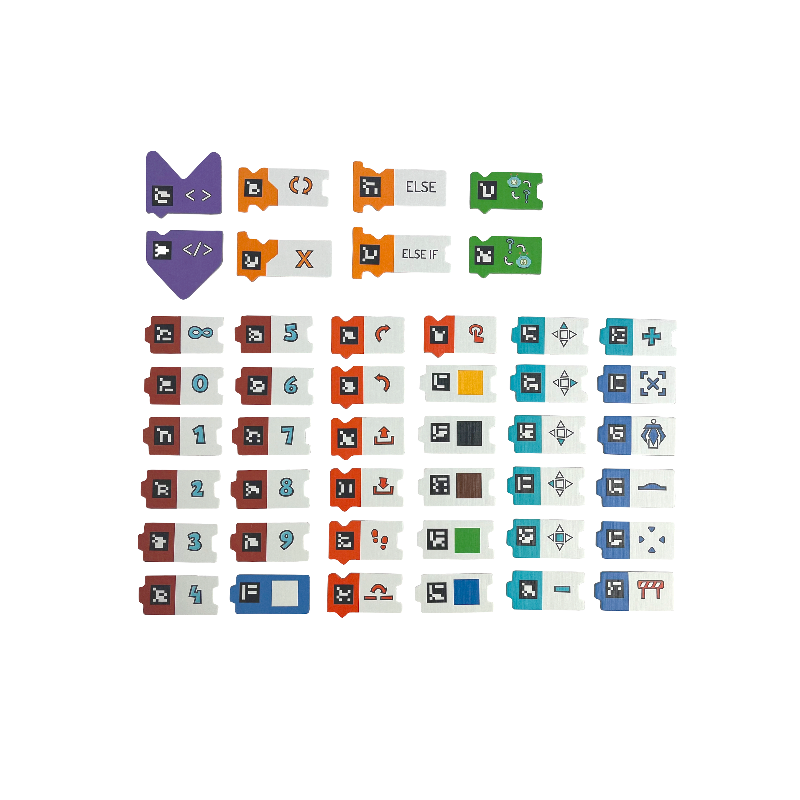 - Cardboard coding blocks are placed on the Game Board like a jigsaw puzzle