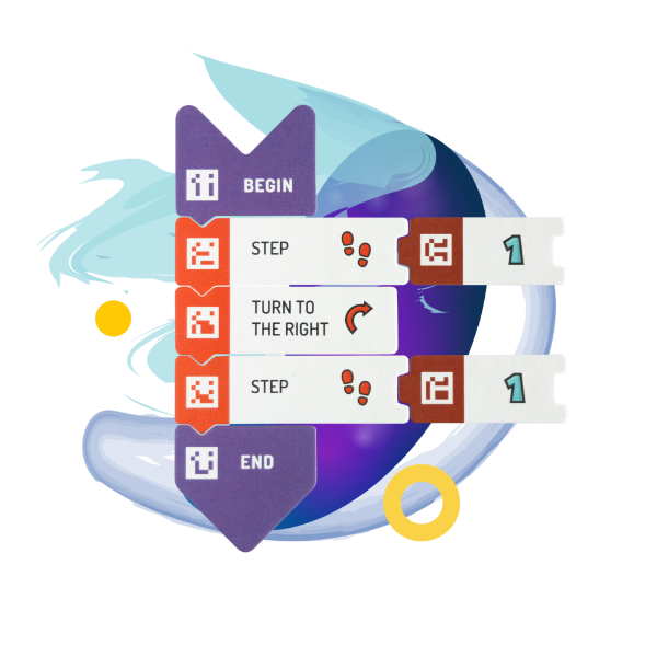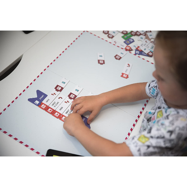 - Cardboard coding blocks are placed on the Game Board like a jigsaw puzzle