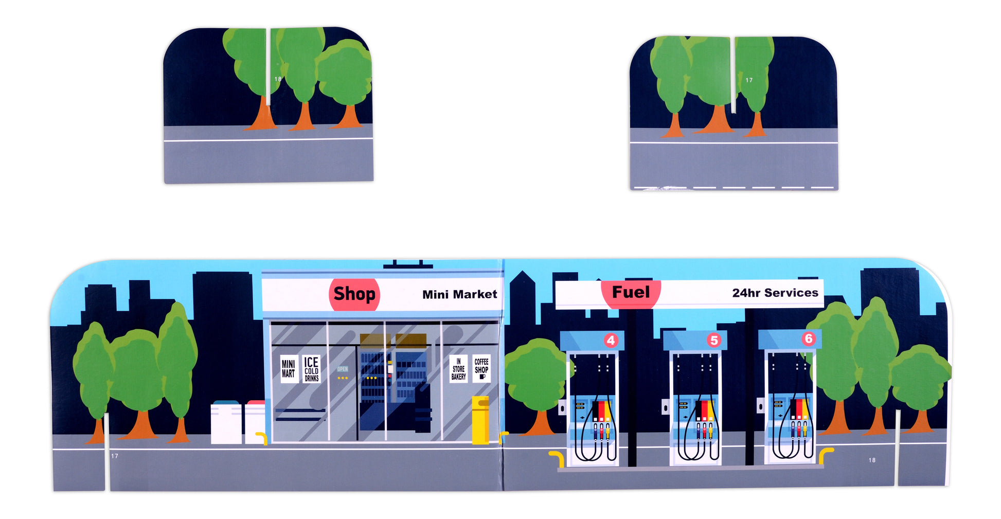 It can also be picked up using the side handles and go wherever they want. When it is time to top up the fuel, it even has its own fuel station to fill up at. On the reverse of the station is colour-in street scene, for hours of colouring fun. Then take the car to pop to the shops. When playtime is finished it can either be parked up ready for the next playtime, or can be dismantled for more permanent storage.